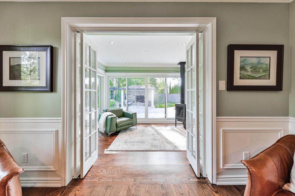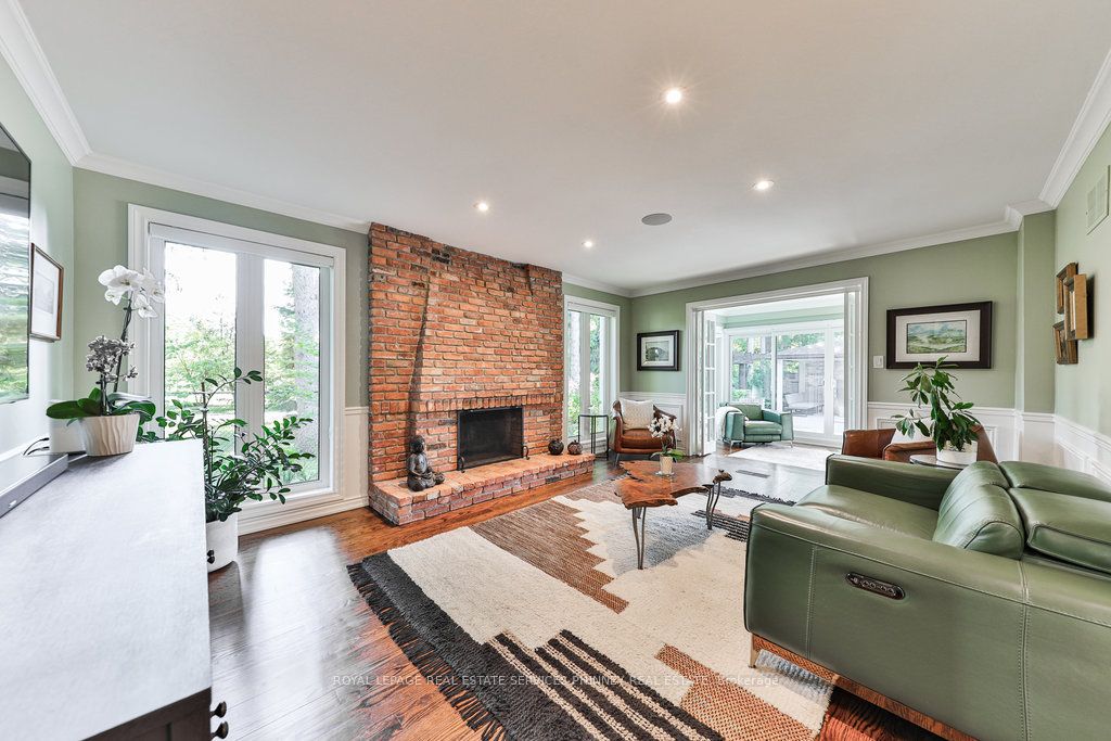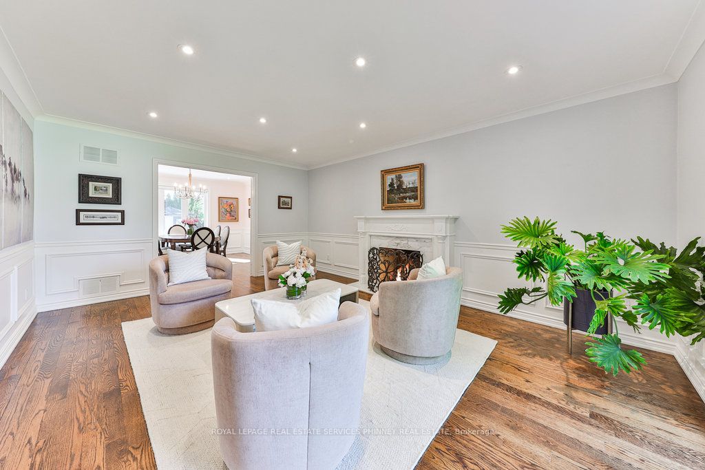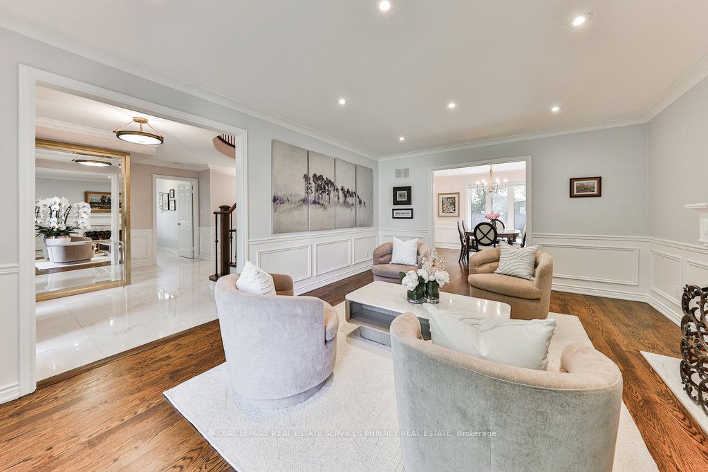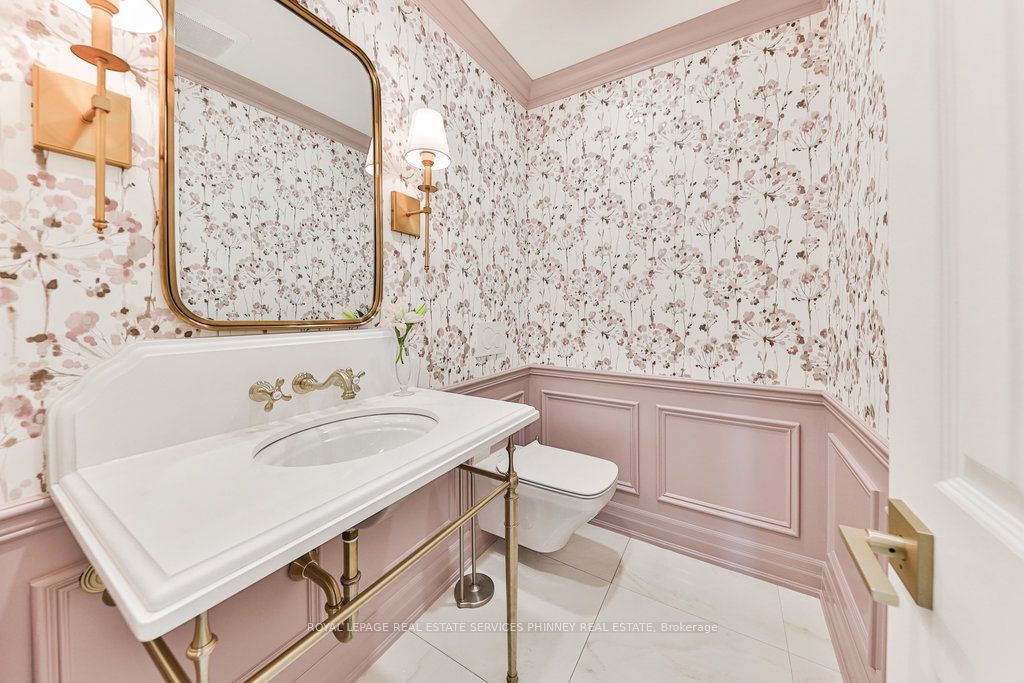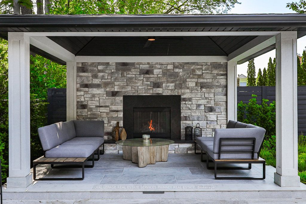 Located in a quiet cul-de-sac, this home brings Muskoka living to the city! The exquisite residence combines sophistication with contemporary features and boasts a picturesque backyard ideal for hosting memorable gatherings. Meticulously renovated from 2021 to 2023, every detail has been carefully attended to. The facade showcases sleek Indiana Limestone, complemented by black pearl granite walkways that shimmer in the sunlight. Step inside to a refined foyer adorned with a crystal mirror, plated in 24 Karat Gold. The expansive main level layout caters perfectly to family life, encompassing a living room, dining room, family room, and a sunroom with views of the outdoor living area. The kitchen stands as a focal point, showcasing custom walnut cabinets, Tuff Skin Marble countertops, high-end appliances, and a central island for casual dining. Upstairs, the primary suite offers ample space, featuring a sitting area overlooking lush front yard gardens and a luxurious 4-piece ensuite bathroom with dual sinks. Additionally, three generously sized bedrooms grace the second floor, one with a spacious sitting area adaptable for various purposes such as a nursery, home office, or entertainment room. No detail is overlooked in this residence. The fully finished basement with wainscoting throughout, a recreation room with a dry bar, a home gym with mirrored walls, and a spa-inspired suite including a sauna, 3-piece bath with multi-jets, and an oversized rain shower. Outside, the entertainment options continue with a built-in BBQ and fridge, a covered outdoor living area wired for television, and a gas fireplace for cozy evenings. Completing the outdoor oasis is a saltwater pool, perfect for cooling off on hot days, with both the liner and equipment recently replaced in 2022. The property overlooks 32 acres of beautifully manicured gardens. See attached list of upgrades.