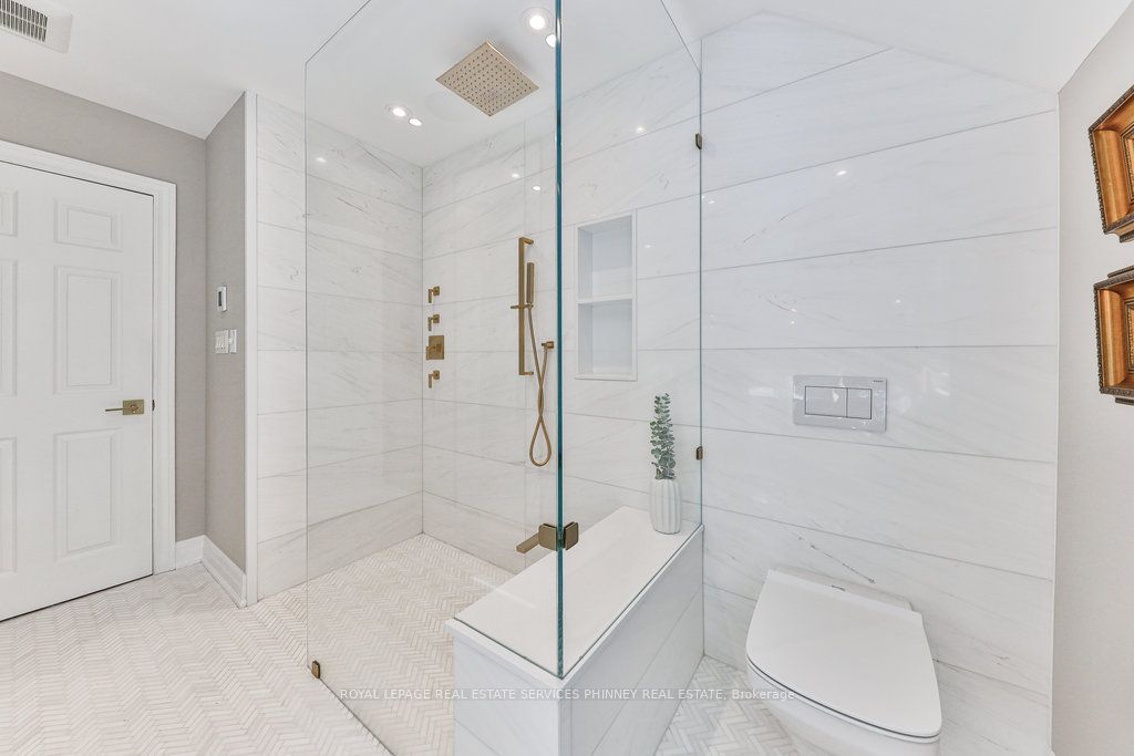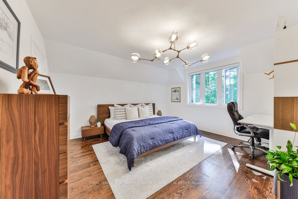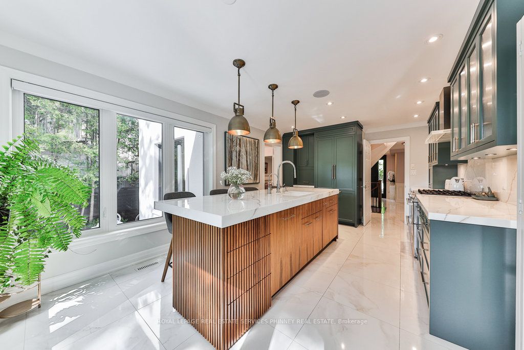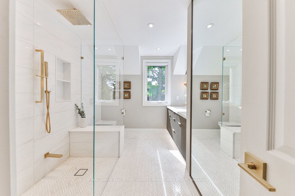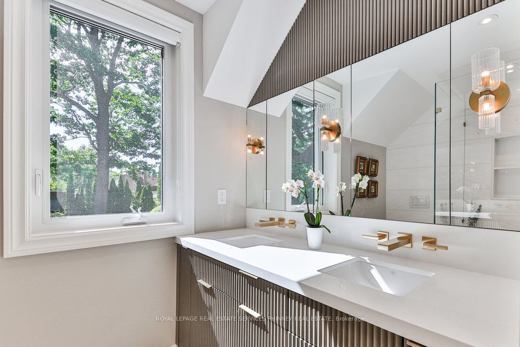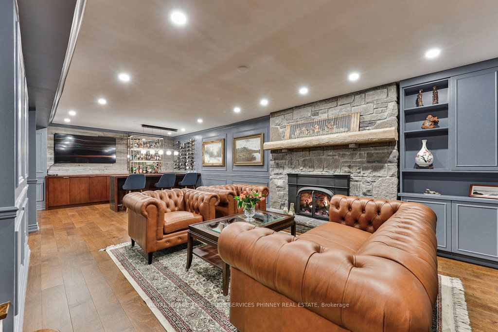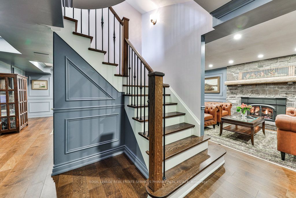 Located in a quiet cul-de-sac, this home brings Muskoka living to the city! The exquisite residence combines sophistication with contemporary features and boasts a picturesque backyard ideal for hosting memorable gatherings. Meticulously renovated from 2021 to 2023, every detail has been carefully attended to. The facade showcases sleek Indiana Limestone, complemented by black pearl granite walkways that shimmer in the sunlight. Step inside to a refined foyer adorned with a crystal mirror, plated in 24 Karat Gold. The expansive main level layout caters perfectly to family life, encompassing a living room, dining room, family room, and a sunroom with views of the outdoor living area. The kitchen stands as a focal point, showcasing custom walnut cabinets, Tuff Skin Marble countertops, high-end appliances, and a central island for casual dining. Upstairs, the primary suite offers ample space, featuring a sitting area overlooking lush front yard gardens and a luxurious 4-piece ensuite bathroom with dual sinks. Additionally, three generously sized bedrooms grace the second floor, one with a spacious sitting area adaptable for various purposes such as a nursery, home office, or entertainment room. No detail is overlooked in this residence. The fully finished basement with wainscoting throughout, a recreation room with a dry bar, a home gym with mirrored walls, and a spa-inspired suite including a sauna, 3-piece bath with multi-jets, and an oversized rain shower. Outside, the entertainment options continue with a built-in BBQ and fridge, a covered outdoor living area wired for television, and a gas fireplace for cozy evenings. Completing the outdoor oasis is a saltwater pool, perfect for cooling off on hot days, with both the liner and equipment recently replaced in 2022. The property overlooks 32 acres of beautifully manicured gardens. See attached list of upgrades.