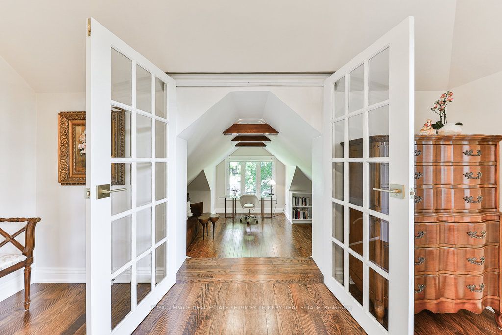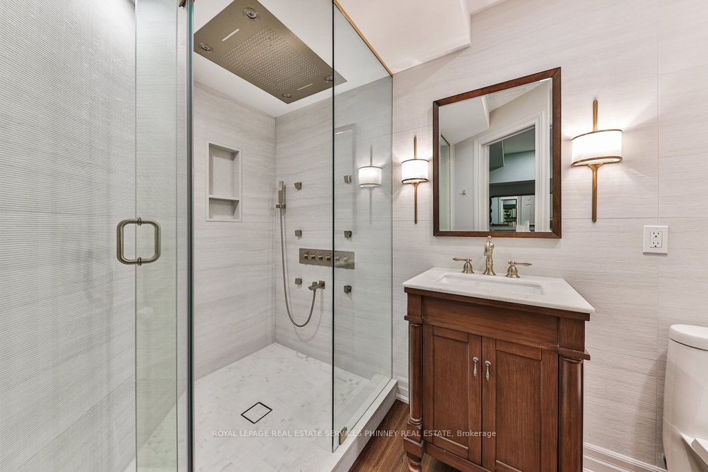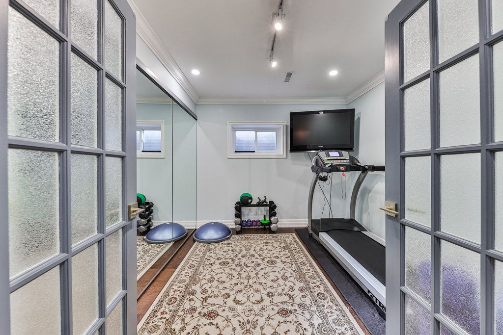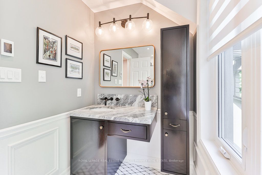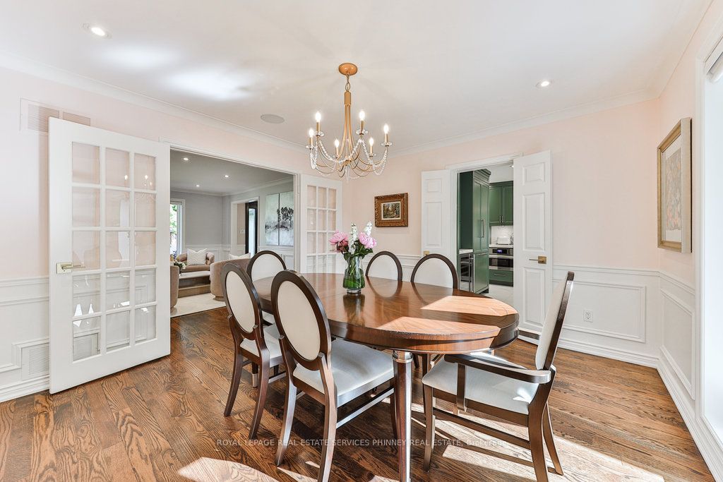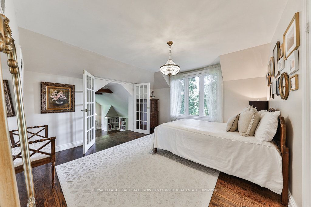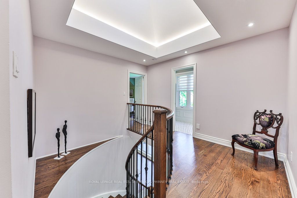 Located in a quiet cul-de-sac, this home brings Muskoka living to the city! The exquisite residence combines sophistication with contemporary features and boasts a picturesque backyard ideal for hosting memorable gatherings. Meticulously renovated from 2021 to 2023, every detail has been carefully attended to. The facade showcases sleek Indiana Limestone, complemented by black pearl granite walkways that shimmer in the sunlight. Step inside to a refined foyer adorned with a crystal mirror, plated in 24 Karat Gold. The expansive main level layout caters perfectly to family life, encompassing a living room, dining room, family room, and a sunroom with views of the outdoor living area. The kitchen stands as a focal point, showcasing custom walnut cabinets, Tuff Skin Marble countertops, high-end appliances, and a central island for casual dining. Upstairs, the primary suite offers ample space, featuring a sitting area overlooking lush front yard gardens and a luxurious 4-piece ensuite bathroom with dual sinks. Additionally, three generously sized bedrooms grace the second floor, one with a spacious sitting area adaptable for various purposes such as a nursery, home office, or entertainment room. No detail is overlooked in this residence. The fully finished basement with wainscoting throughout, a recreation room with a dry bar, a home gym with mirrored walls, and a spa-inspired suite including a sauna, 3-piece bath with multi-jets, and an oversized rain shower. Outside, the entertainment options continue with a built-in BBQ and fridge, a covered outdoor living area wired for television, and a gas fireplace for cozy evenings. Completing the outdoor oasis is a saltwater pool, perfect for cooling off on hot days, with both the liner and equipment recently replaced in 2022. The property overlooks 32 acres of beautifully manicured gardens. See attached list of upgrades.