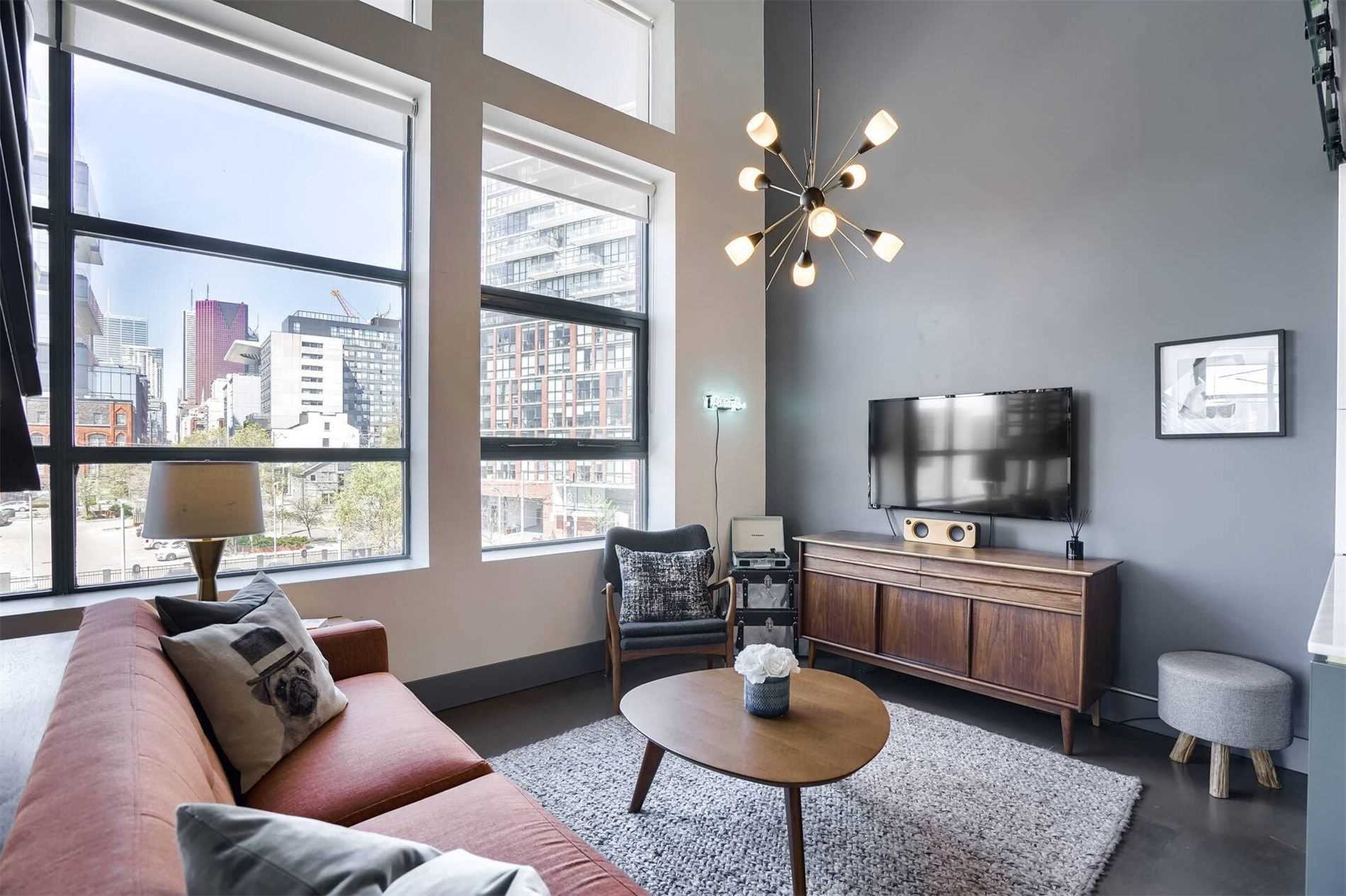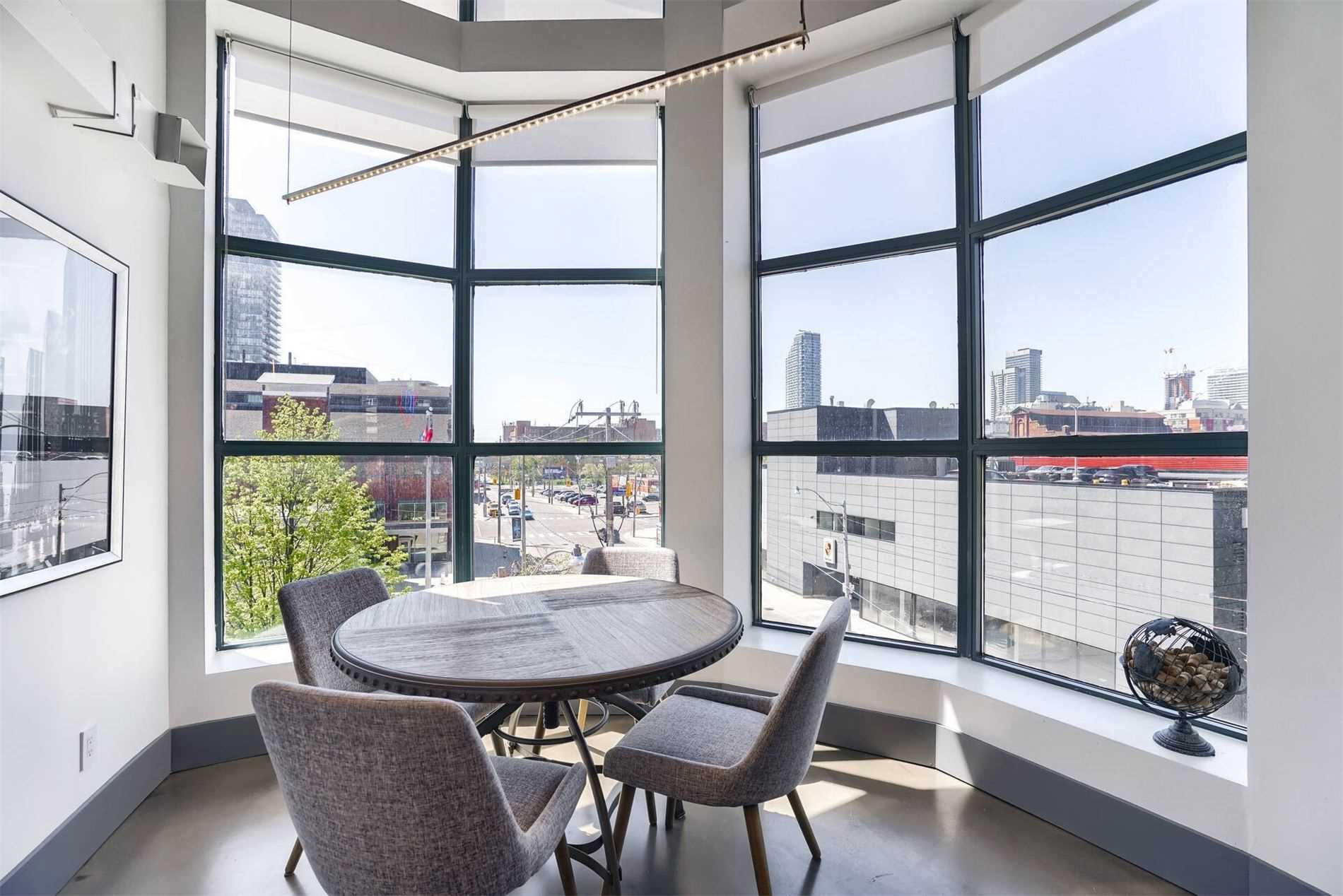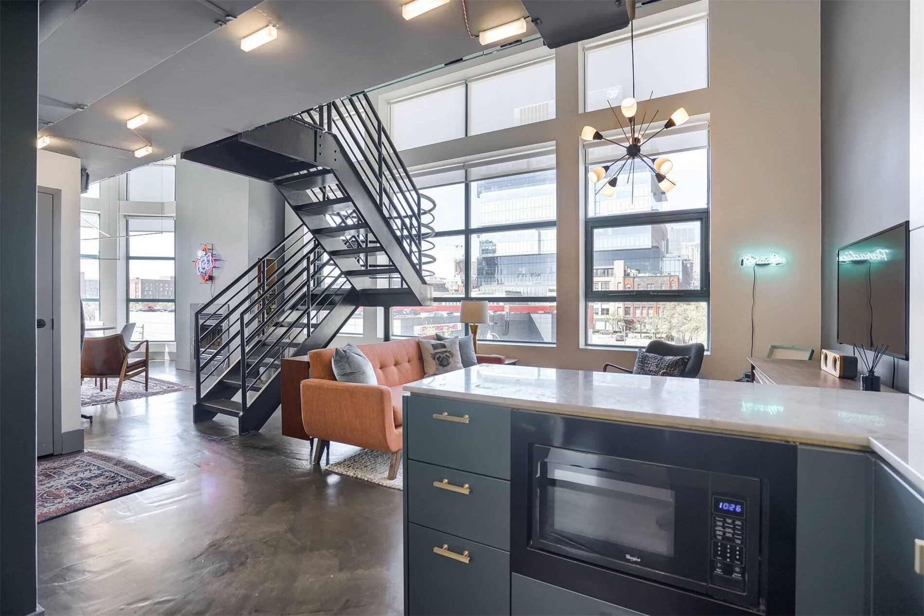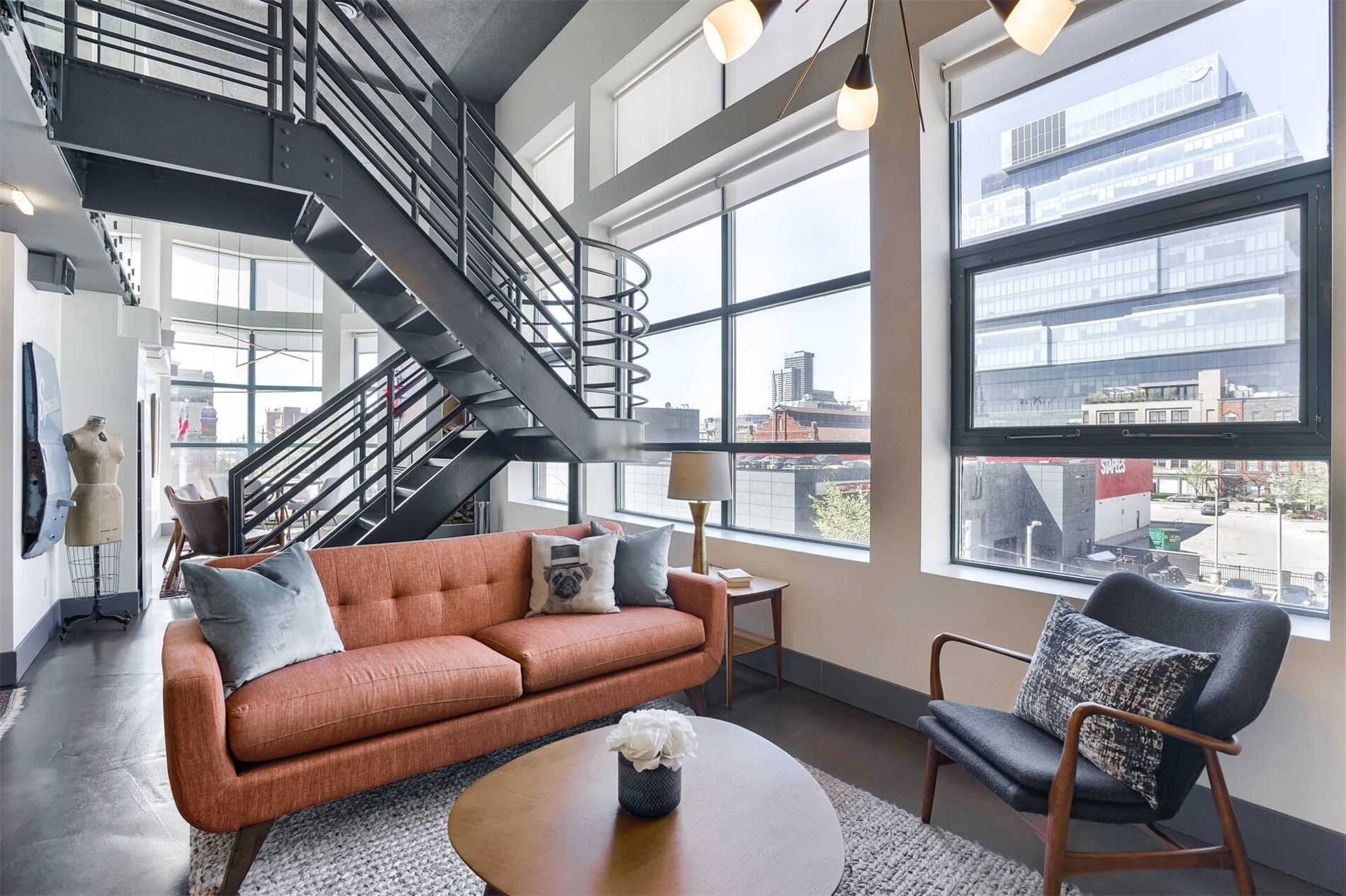 Uber Rare Boutique Loft With A New York Vibe. Put On Your Favorite Jams, Shake Up A Martini And Dance Away In The Glow Of City Lights. One Of A Kind Two Storey Residence With Unobstructed Panoramic Views Of Downtown And The Lake. South West Corner Unit. Professionally Designed With Custom Finishes Top To Bottom. Features: Floating Steel Staircase, Glass Walls, 16Ft Ceilings, Concrete Floors, Wood Burning Fireplace. Approx 1100Sqft Of Living Space.